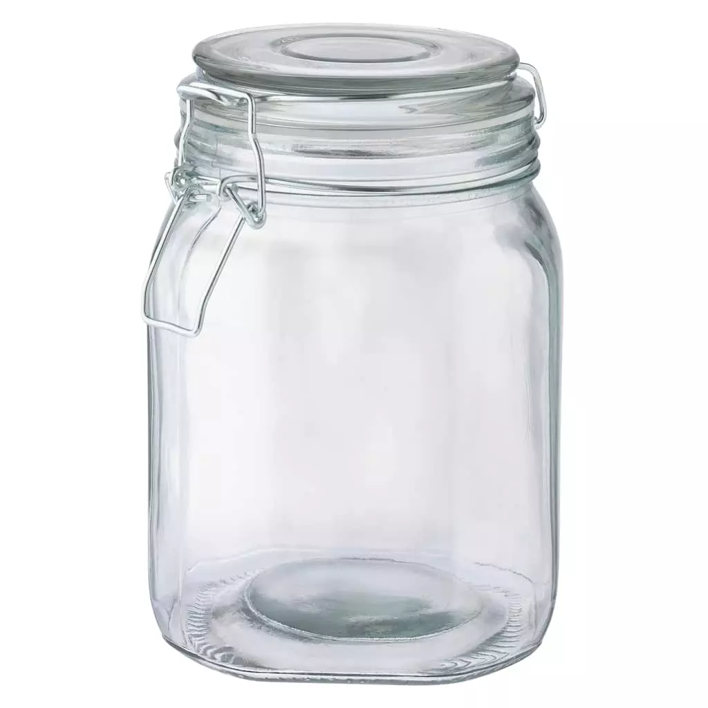 The clear canister with a Hermes clamp lid has so many versatile uses!Β You can use it in the kitchen or craft room for functional storage. You can also personalize it with paint and give it as a gift, or fill it up with various colors of sand, pebbles, stones or rocks for a stylishΒ home dΓ©corΒ piece.Β