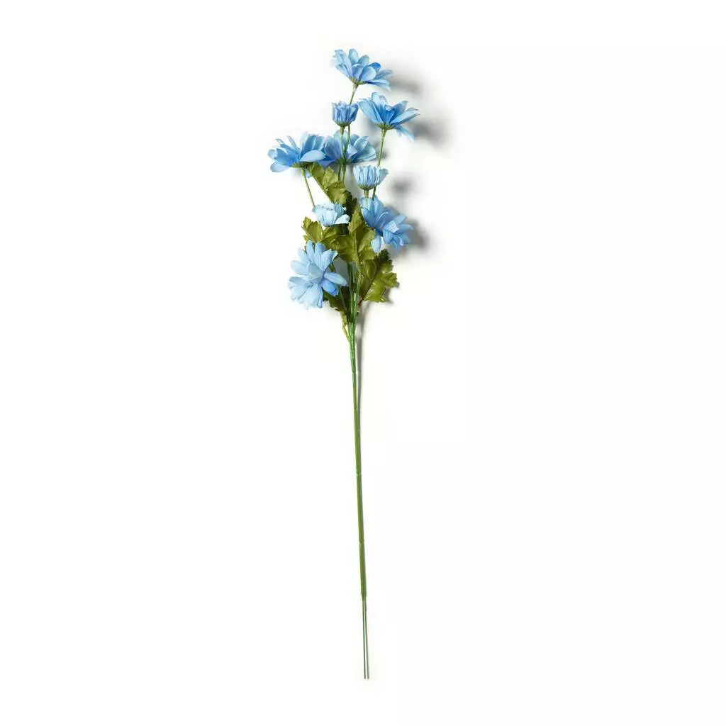 Daisies traditionally signify purity or innocence. Create a beautiful floral arrangement with cheerful groups of this delphinium blue daisy stem. This single stem with multiple flowers of blue petals and dark yellow centers can be used for floral arranging, craft projects and decorative purposes.