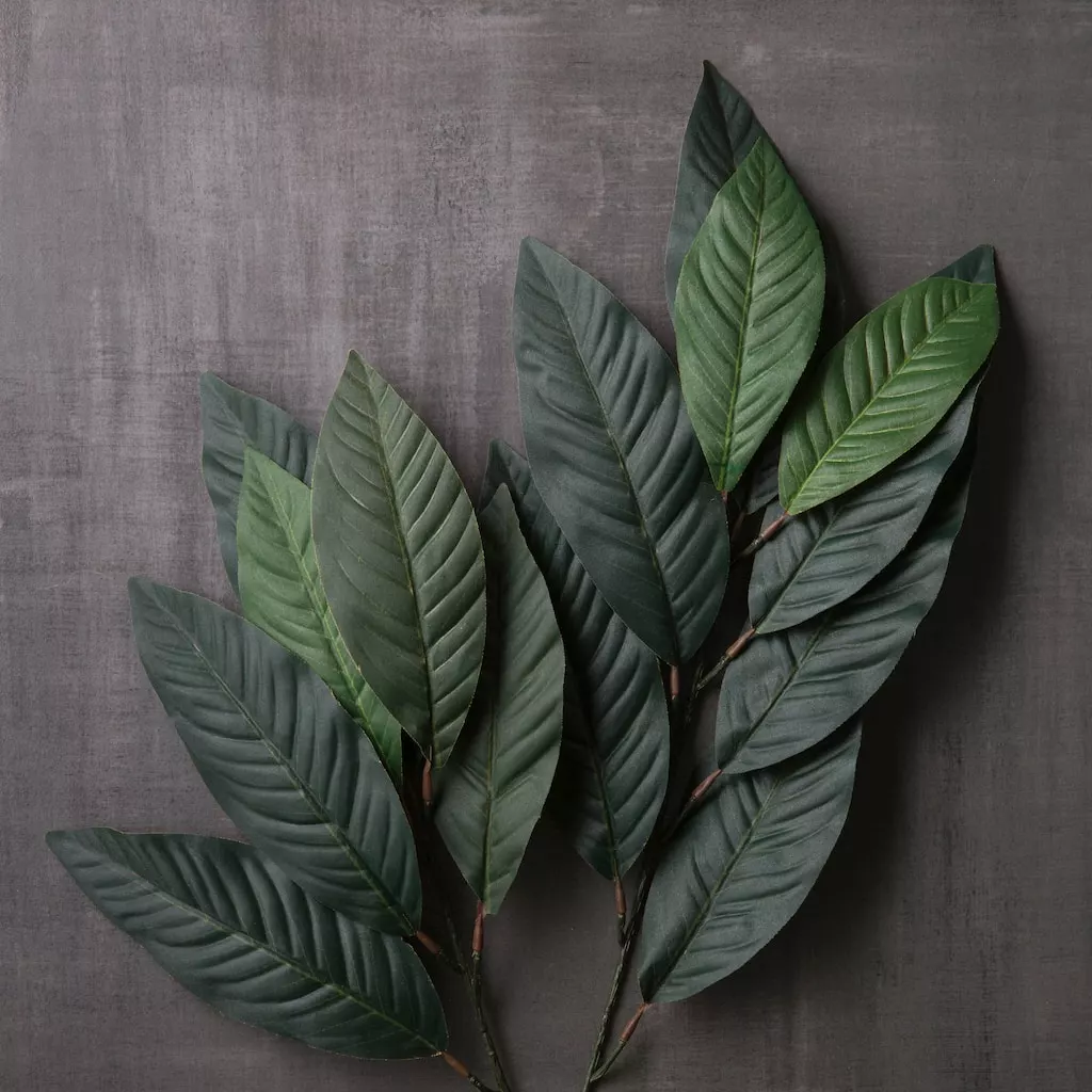 Express your style and make a statement with this magnolia leaf spray. Use this spray alone in a vase or as a component in an arrangement to convey your one-of-a-kind flair.