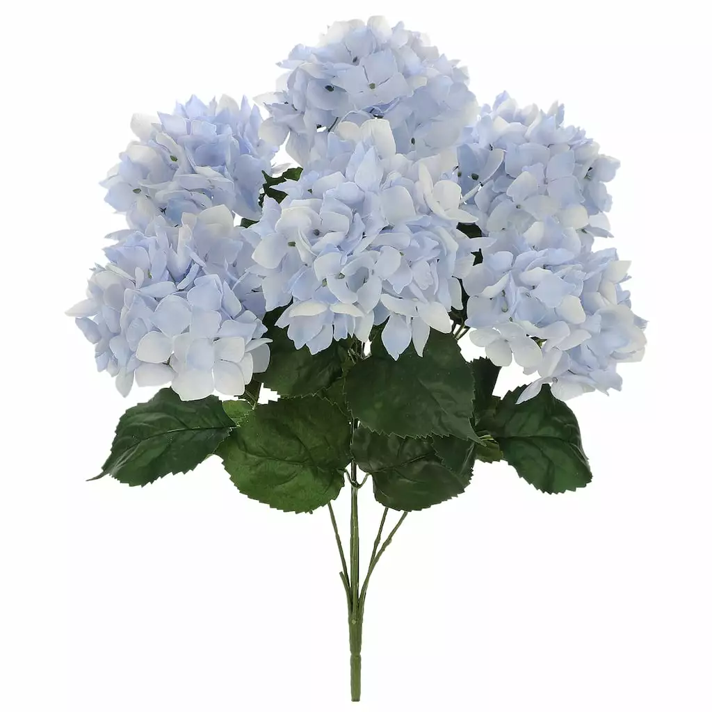 Place this charming light blue hydrangea bush in a clear glass vase to brighten up your living room. Team it with other flowers to create a lovely tabletop display.