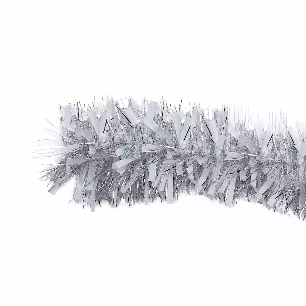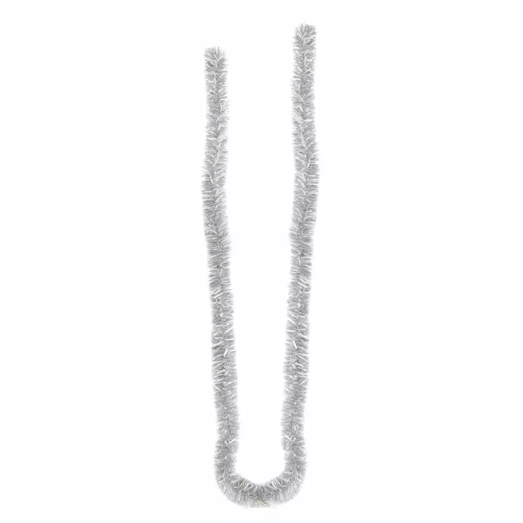 Bring a touch of Christmas magic to your décor with this garland made of shimmery silver tinsel. This flashy garland will make a great addition to your tree, or drape across a mantel or banister paired with lights and greenery for a fun, festive display full of holiday cheer.