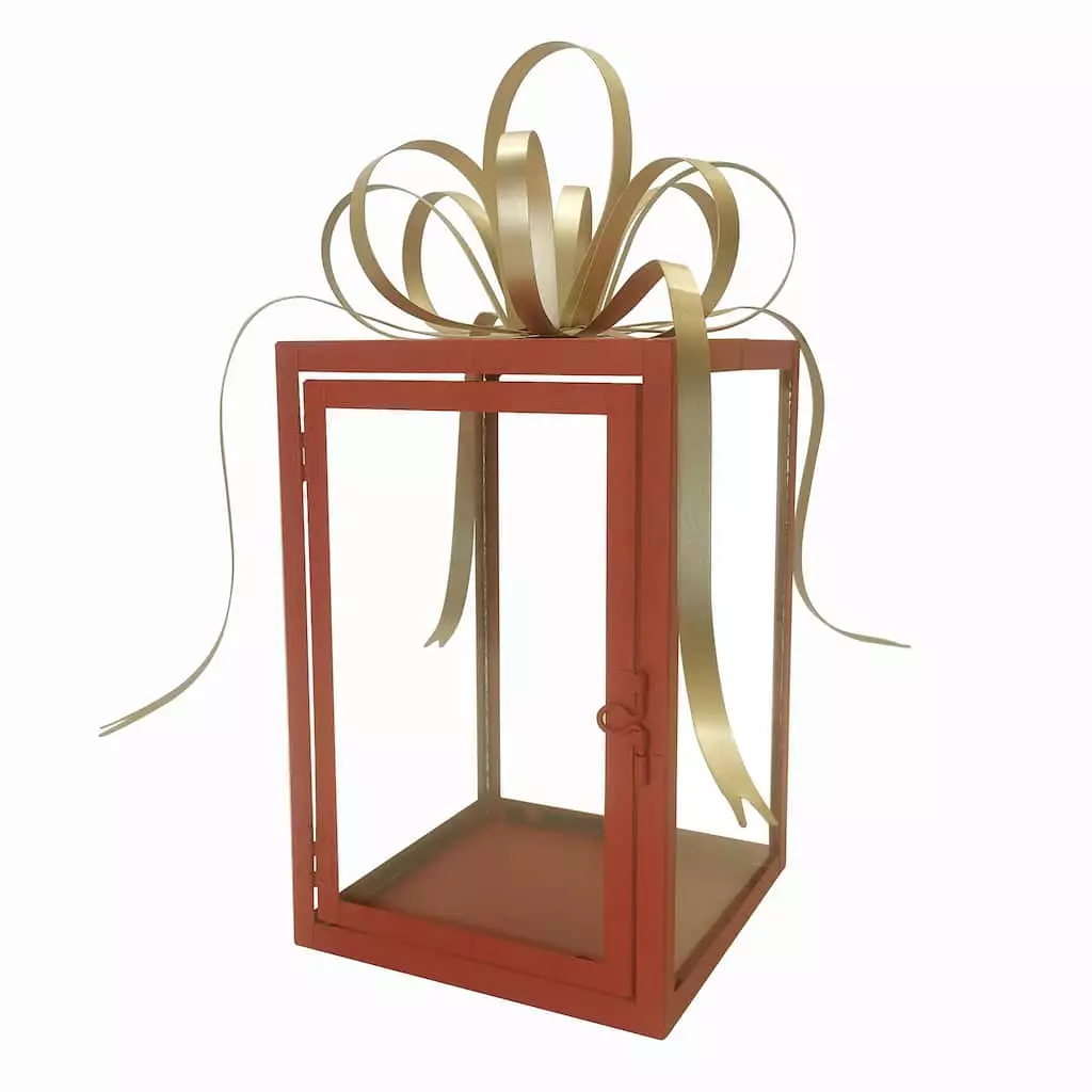 Illuminate your home by placing an LED candle inside this beautiful gift box lantern. Team it with a Christmas floral arrangement and seasonal accents for the perfect display.