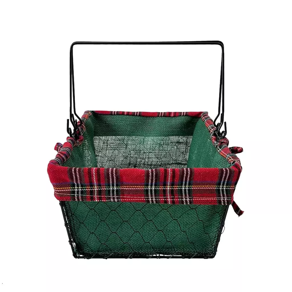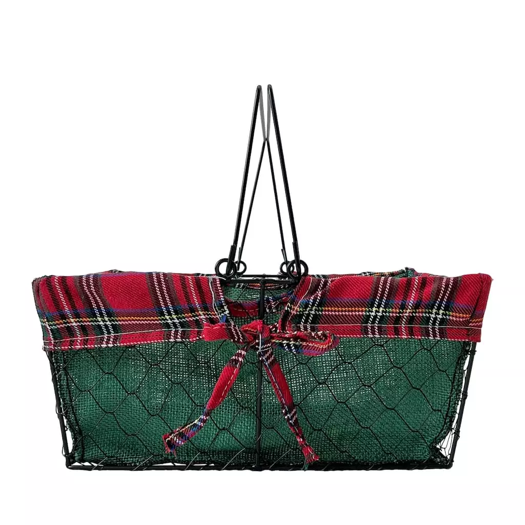 Add a festive touch to your holiday with this iron basket with burlap. Place in it small knick-knacks, decorative pieces such as ornaments, and individually wrapped goodies like candy canes and more!