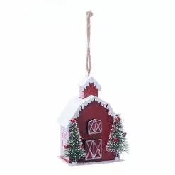 This unique metal ornament features a traditional red barn with a Christmas tree on each side. It has an array of bright colors and a loop on top for easy hanging. Put the ornament on your tree, wreath, or any other item for more depth and style. It will make a great addition to your holiday-themed décor.
