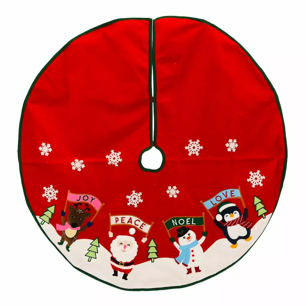 This charming Christmas tree skirt, featuring a mix of beloved characters holding up signs, is a fantastic way to complete your holiday decorating. Wrap around the bottom of your tree to add extra cheer to your home for the season.
