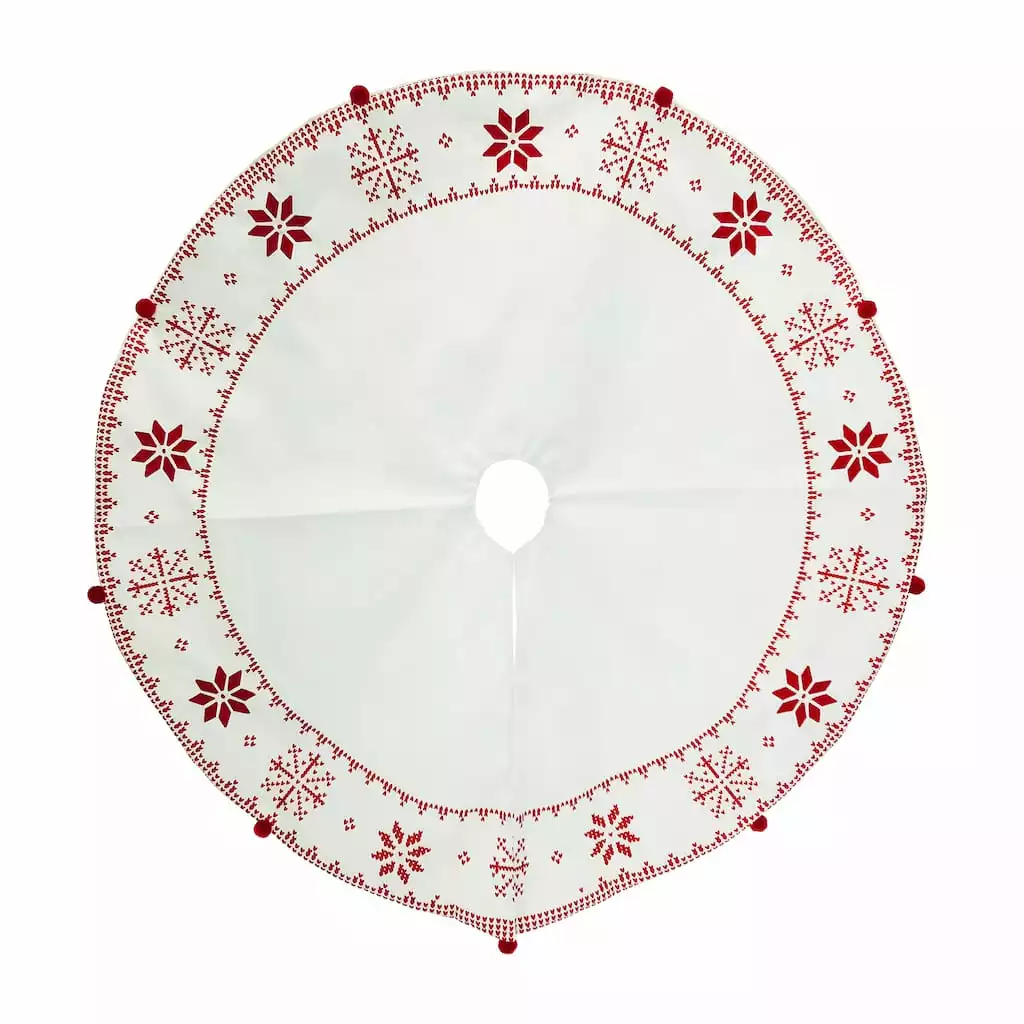 This charming Christmas tree skirt, featuring a Fair Isle style design, is a fantastic way to complete your holiday decorating. Wrap around the bottom of your tree to add extra cheer to your home for the season.