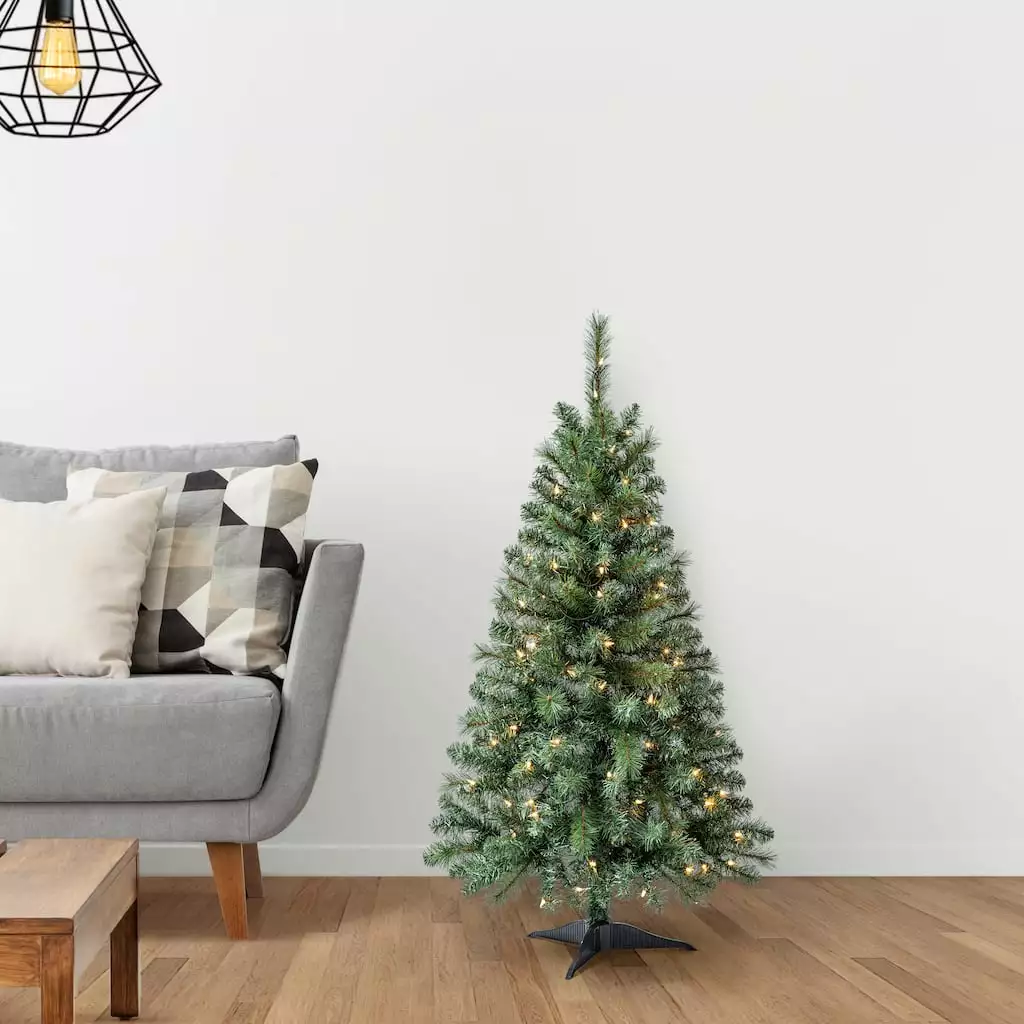 This lush and verdant artificial Christmas tree features 220 easy-to-shape branch tips and 100 clear lights for charming holiday ambiance. Crafted from durable PVC and hard needle, this lovely tree is ready to showcase your favorite trimmings season after season.