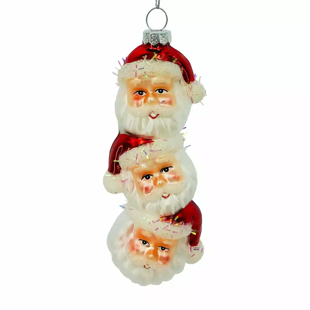 This unique ornament features multiple stacked Santa heads. It also has a loop on top for easy hanging. Put it on your tree, wreath, or any other item for more depth and style. It will make a great addition to your holiday-themed décor.