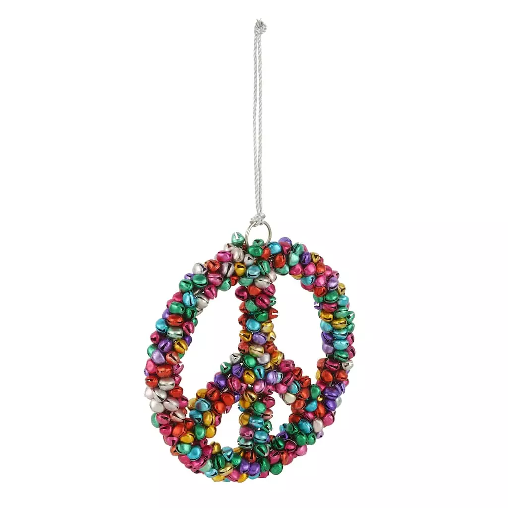 This unique ornament features a peace sign with colorful bells. Put the ornament on your tree, wreath, or any other item for more depth and style. It will make a great addition to your holiday-themed décor.