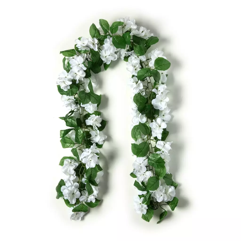 Add a touch of greenery to your dรฉcor. This white hydrangea garland is perfect for any season. Display it on the wall or window of your living room to lend your space a naturalistic vibe.