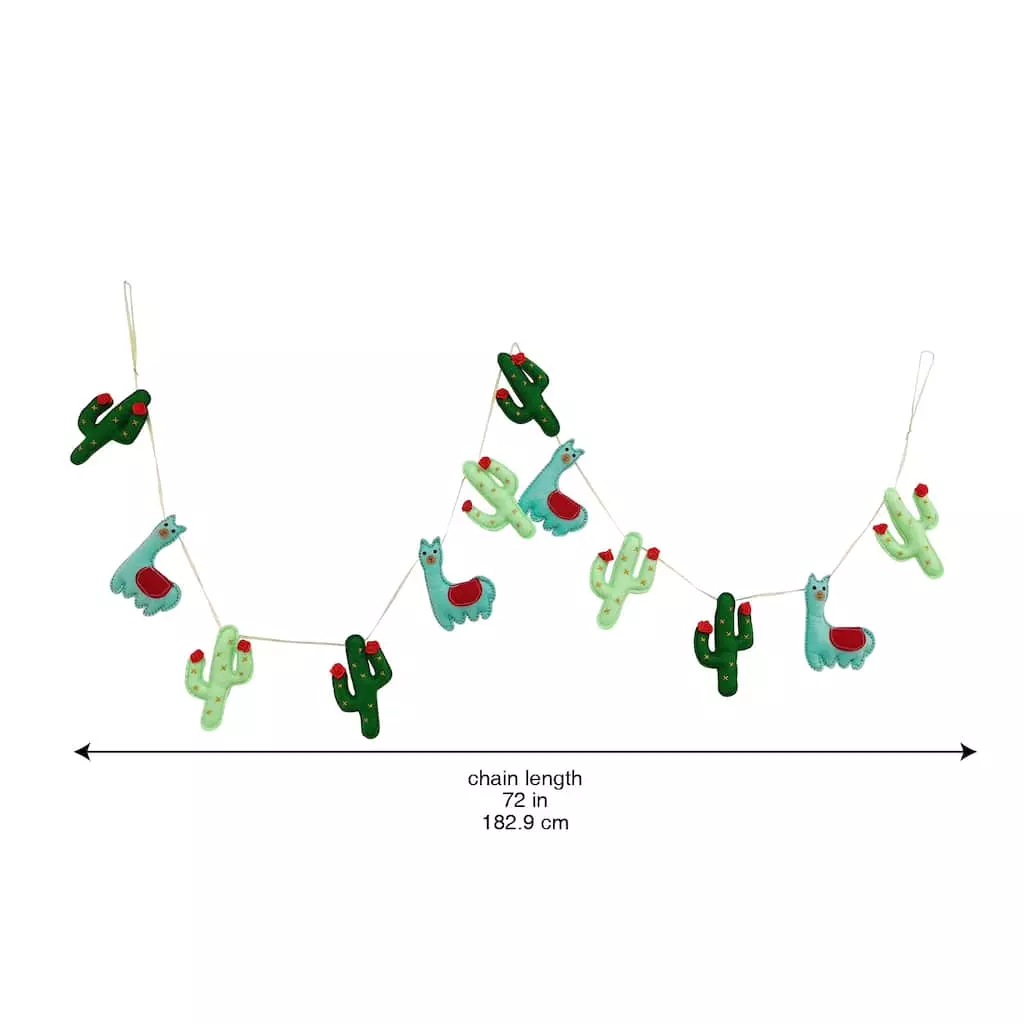 Bring a touch of southwest flair to your Christmas decorating with this quirky garland of adorable alpacas and cacti. This playful string makes a great addition to your tree, or drape across a mantel or bannister paired with lights and festive ribbon for a fun display full of holiday cheer.