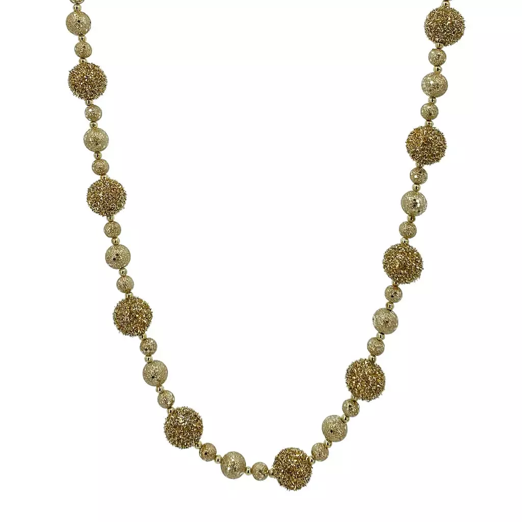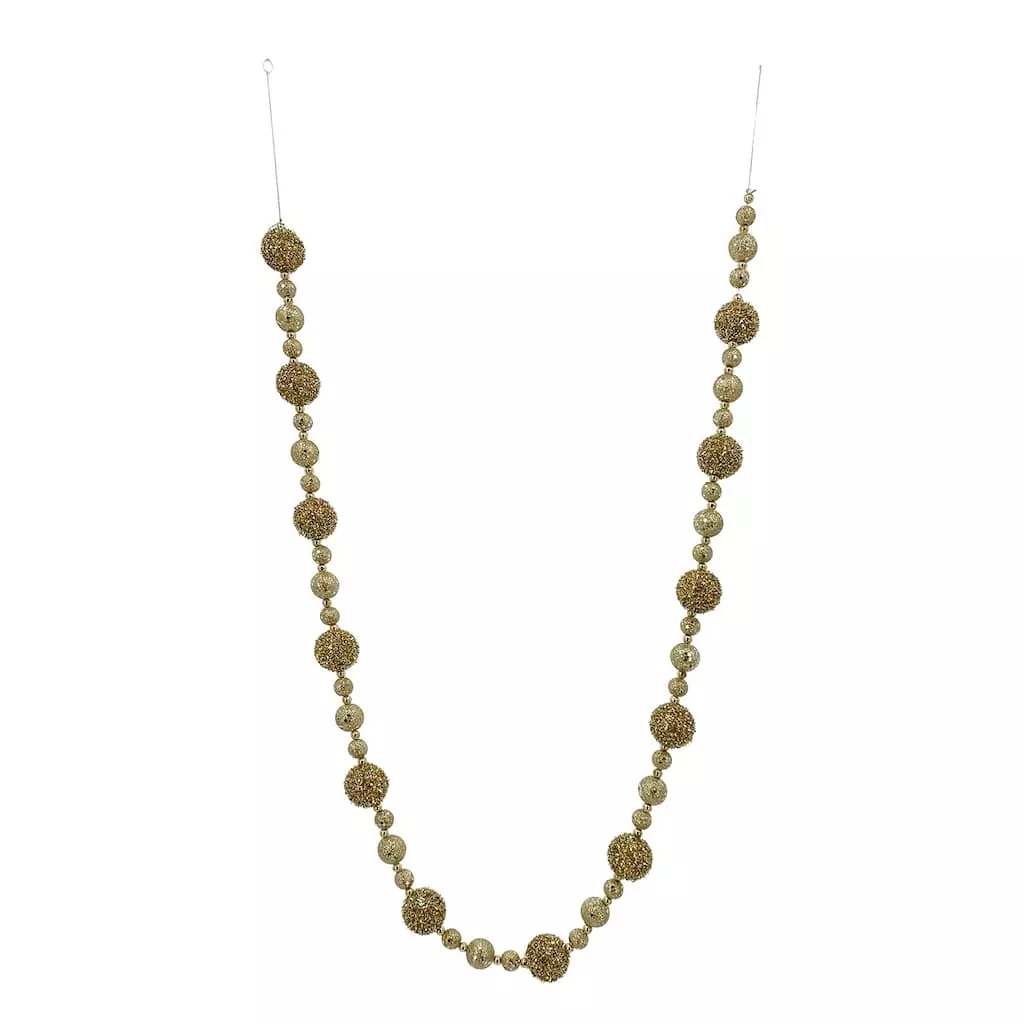 Bring a touch of Christmas magic to your decorating with this lovely garland of glittery gold balls and beads. This shimmery string makes a great addition to your tree, or drape over a mantel or bannister embellished with lights and ribbon for a festive display full of holiday cheer.