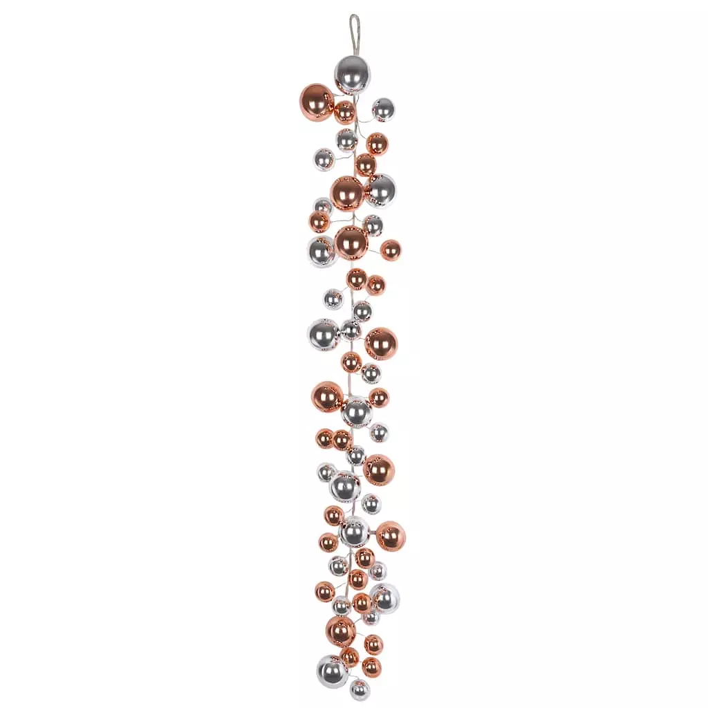 Bring a touch of Christmas magic to your decorating with this lovely garland of shiny rose pink and silver ball ornaments. Drape this piece over a doorframe, mantel or bannister as is or with added lights and ribbon for a festive display full of holiday cheer.