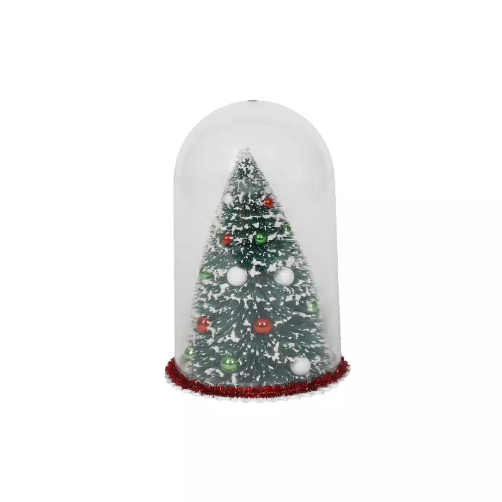 This festive tree is placed inside of a dome and designed with ball ornaments to enhance your holiday décor. Put it on your entryway table, desk, or mantle, or any area for added Christmas cheer.