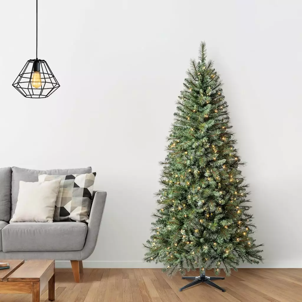 This lush and verdant artificial Christmas tree features 792 easy-to-shape branch tips and 300 clear lights for a striking glow. Hang your favorite ornaments on the sturdy branches, and enjoy holiday cheer season after season.