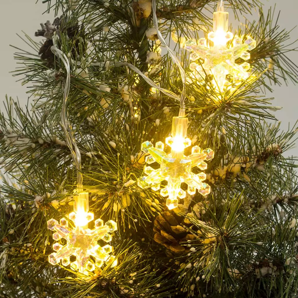 Make the season bright with these festive snowflake-shaped crafting lights from Ashland! These warm white battery-operated LED bulbs on a clear wire feature steady burning, fading and flashing light settings and a timer. These lights are ideal for use in handmade gifts and lit holiday floral décor to display in your home for the Christmas season.