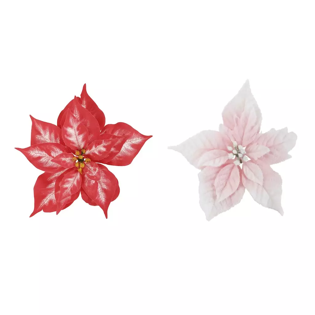 This poinsettia accent is perfect for adding a festive touch to your DIY Christmas projects. It features a back clip that lends extra security.