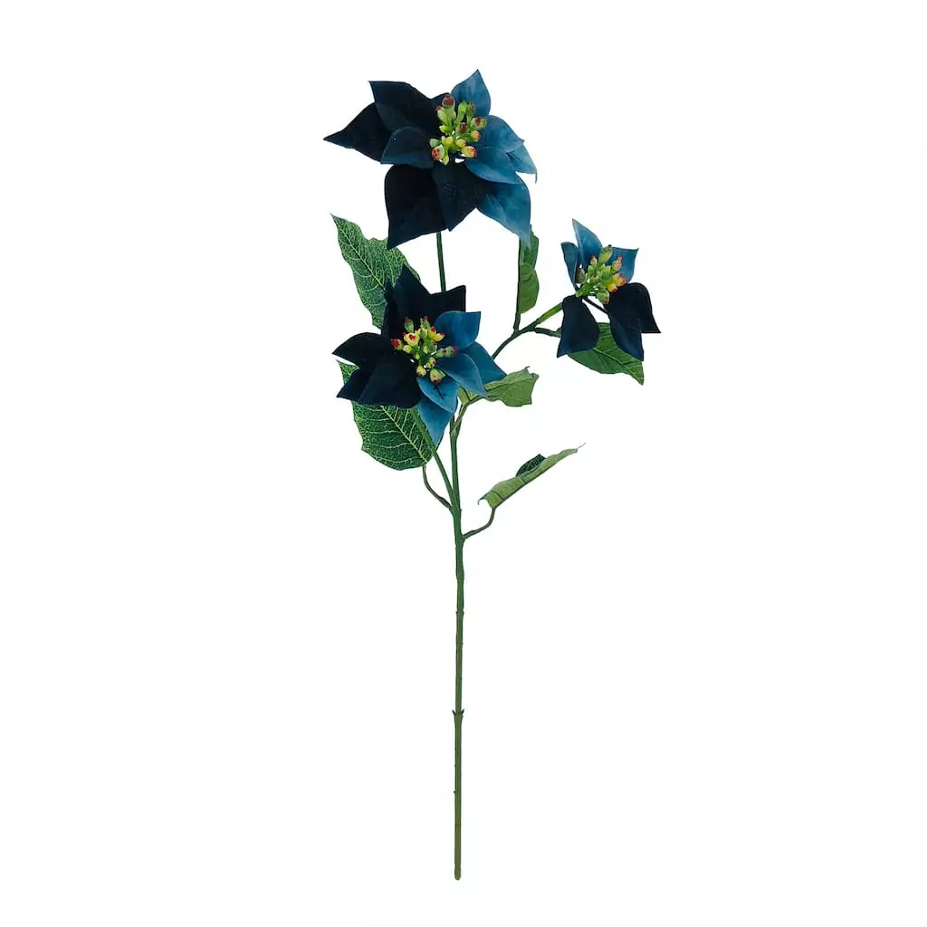 Decorate your home with this beautiful 3 flower poinsettia stem by Ashland. It will look lovely for the holiday season in a vase full of greenery.