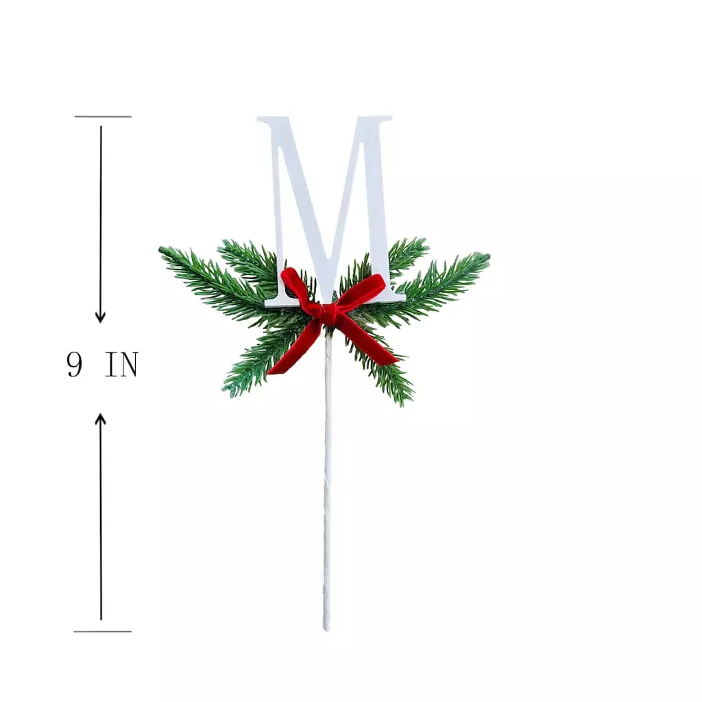 Transform your Christmas floral arrangement with this Christmas-themed letter “M” pick. Combine it with glittery poinsettias, frosted pinecones, and holly berries to create the perfect display!