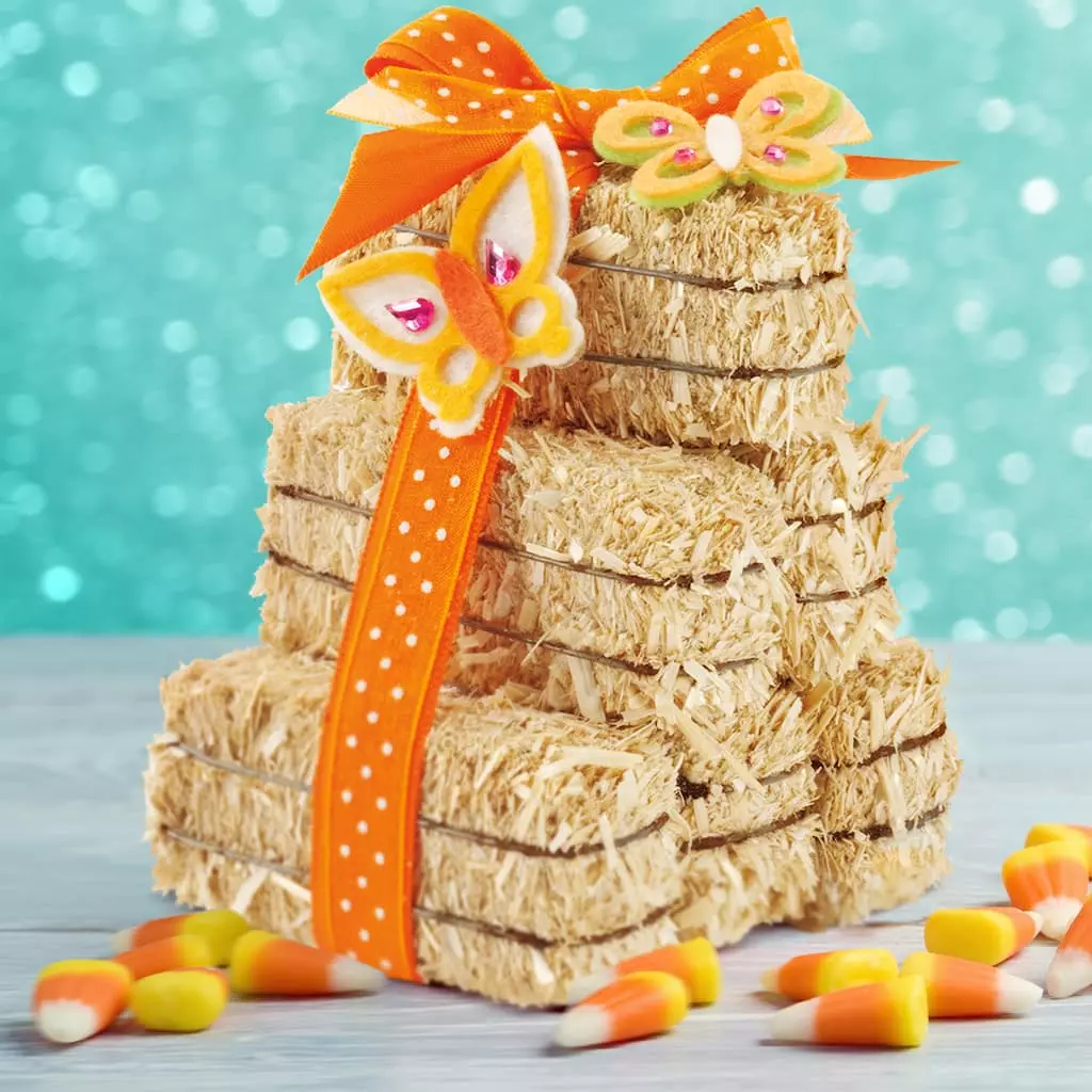This decorative straw bale is made from high-quality, natural, barley straw. Sun-baked straw has a rich, golden color that is perfect for indoor or outdoor home dΓ©cor and is bound with durable, rust-resistant, galvanized wire. Display one bale by itself or stack a few together to create a fall display. The 2.5″ straw bale size is great for adding a rustic, farmhouse-chic or western style to special events like weddings, birthdays, engagement parties, baby and bridal showers and graduation parties.