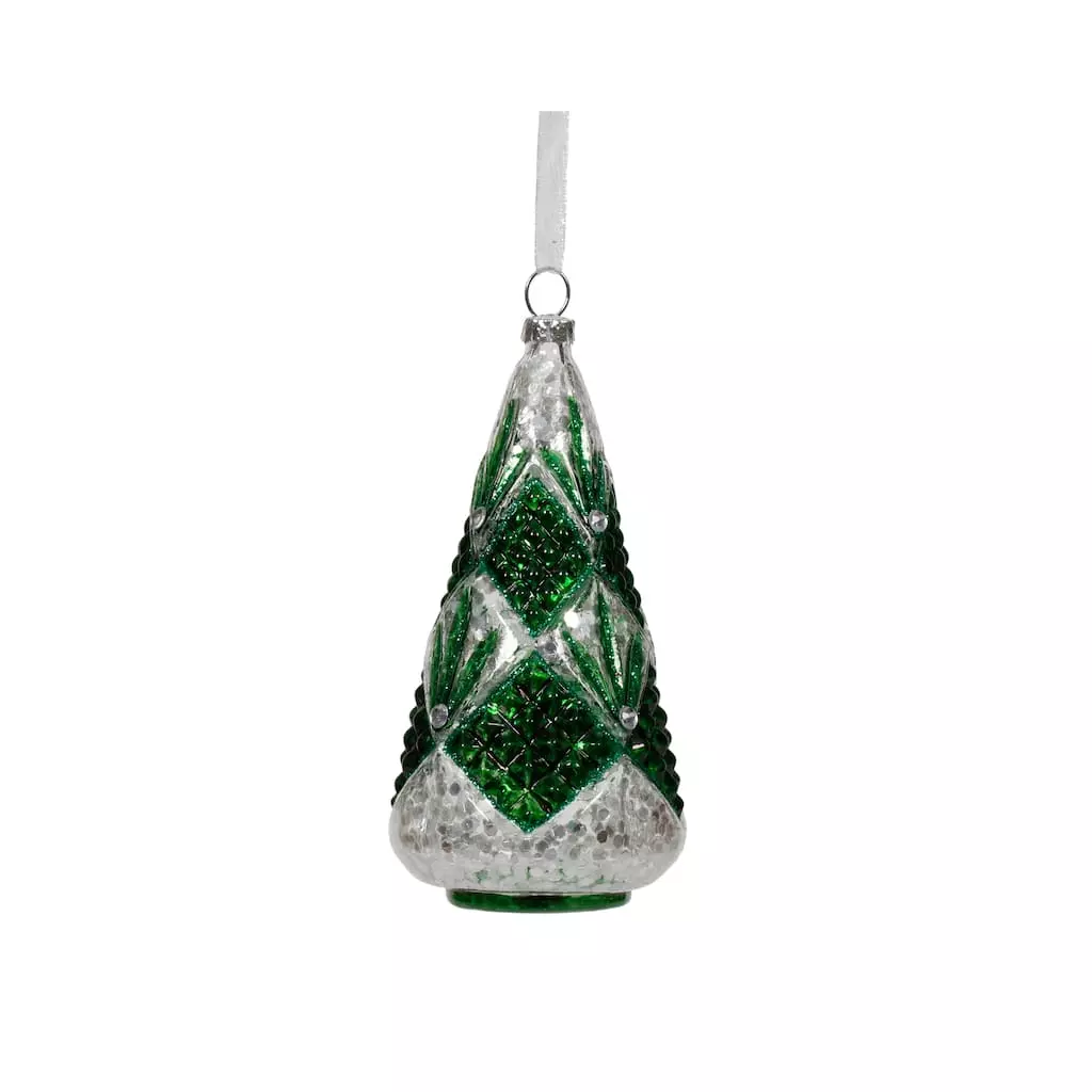 Add this glass Christmas tree ornament to your holiday décor. Place it on a Christmas tree or display the ornament on a ornament stand.
