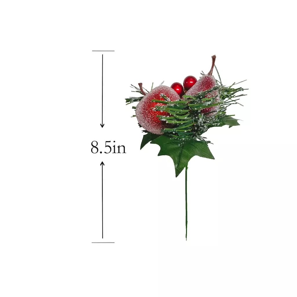 Give your holiday wreaths and floral arrangements a lovely natural touch with this festive red apple, pear and pine pick from Ashland. Featuring icy fruit and bright red berries, this piece will display beautifully with snowy white blooms and evergreen branches in a ceramic vase for the Christmas season.