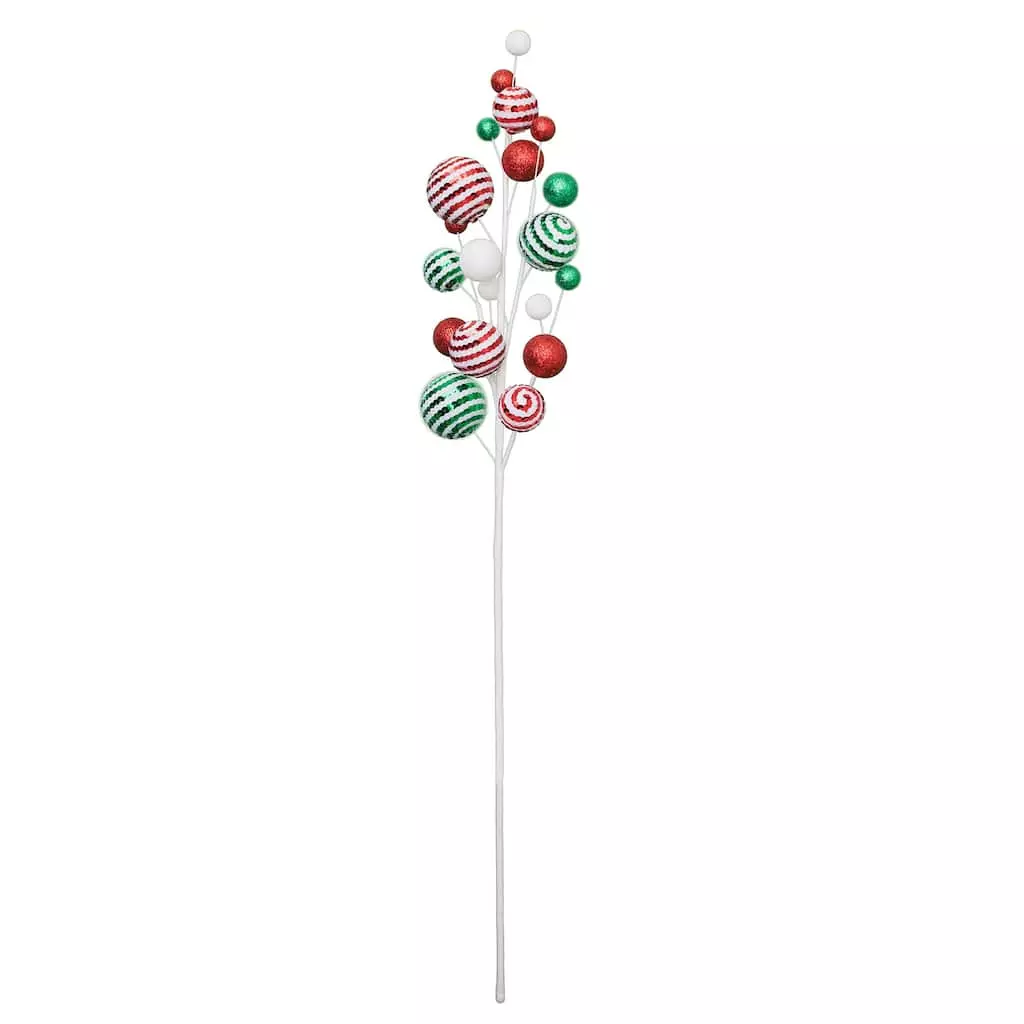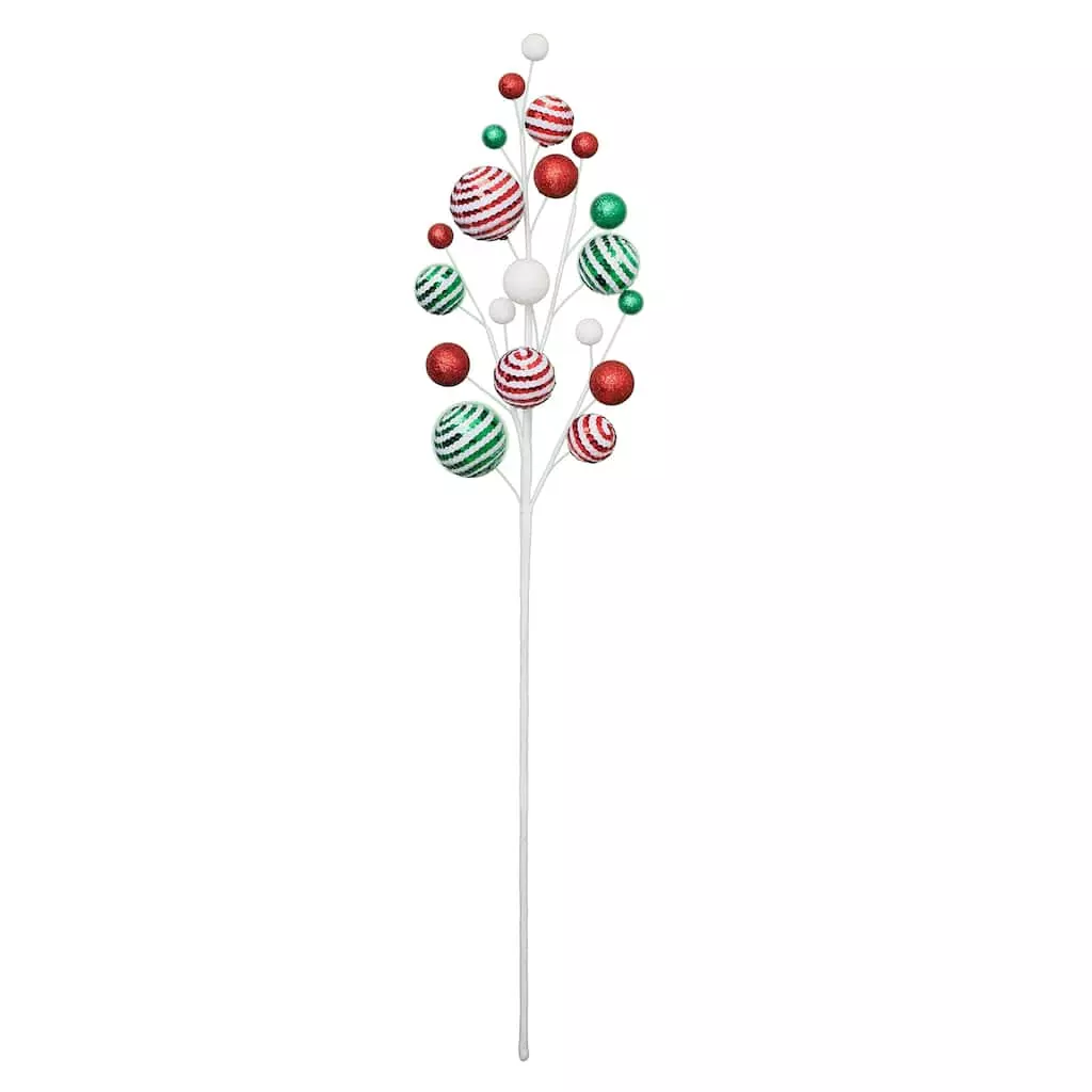 This red, white and green ball ornament stem is perfect for transforming any holiday floral arrangement. Pair it with glittery poinsettias and other whimsical picks for the perfect look!