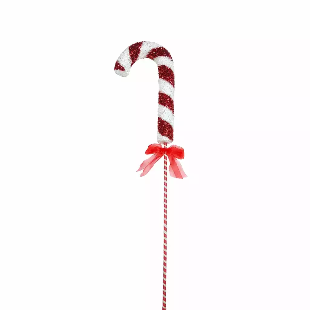 This red, white, and green candy cane stem is perfect for adding a whimsical flair to a Christmas floral arrangement. Pair it with large white poinsettias for an extra festive appeal.Β