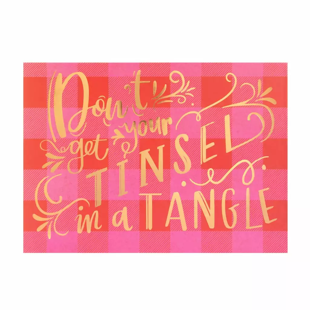 This flip top decorative box is the perfect piece for your home dรฉcor and storage. It features “Don’t get your tinsel in a tangle” and a seasonal design with trees.