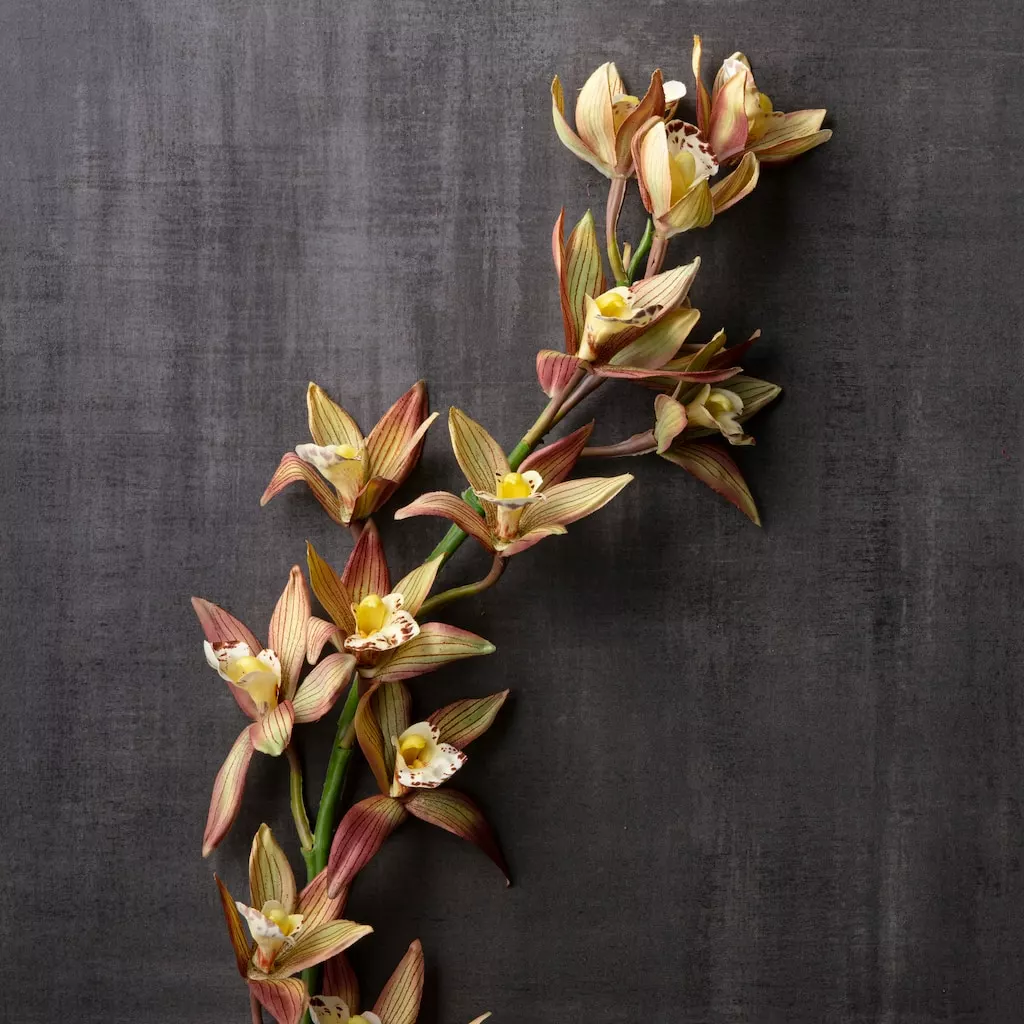 This tropical cymbidium stem with narrow, pointed petal leaves is perfect for enhancing your home décor! Since your taste is always in style, apply your creative vision and use this stem alone or as a component in an arrangement.